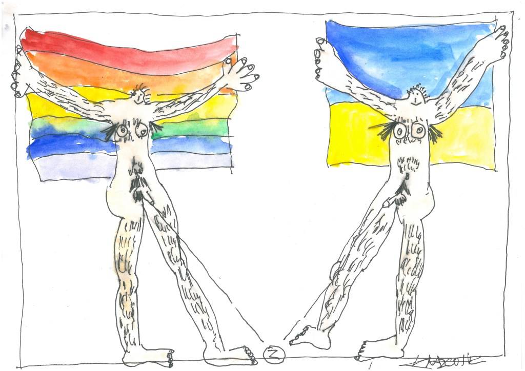 From the perspective of a queer artist, it’s drawing attention to the fact that LGBTQIA+ individuals are also involved in defending the Ukrainian people and territories.