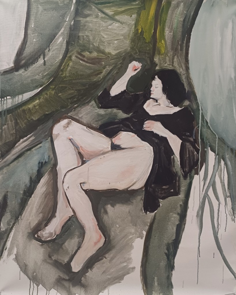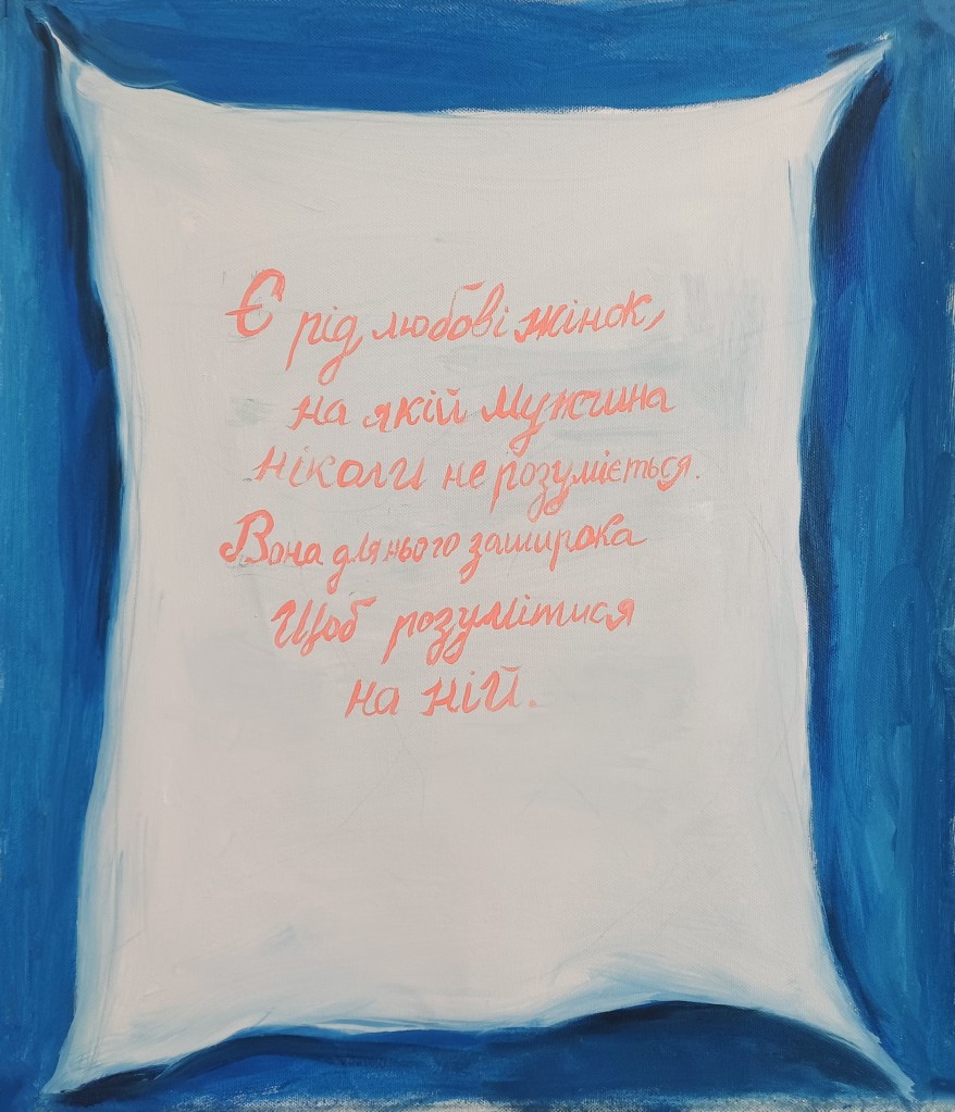 This world embodies the dreams of Olha Kobylianska, expressed in her “Valse melancolique” back in 1898, which at that time was a powerful gesture of emancipation. What was once the limit of dreams is becoming reality. The paintings depict a contemporary ‘women’s paradise’ in Ukraine, where female coexistence without men becomes an undeniable reality in the conditions of war. However, utopia always remains only a concept due to the impossibility of its existence. Because alongside this dreamlike womanhood, death walks nearby.